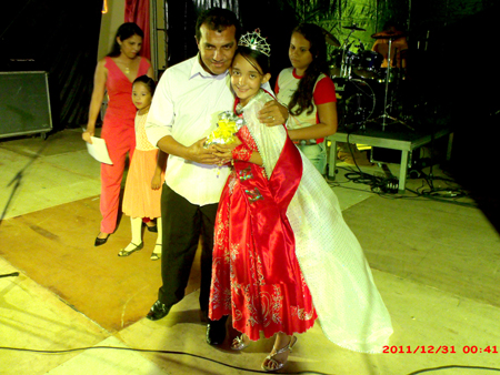 | Pe. Josenildo, com a Rainha eleita, Maria Luiza Santos Silva, 10 anos |